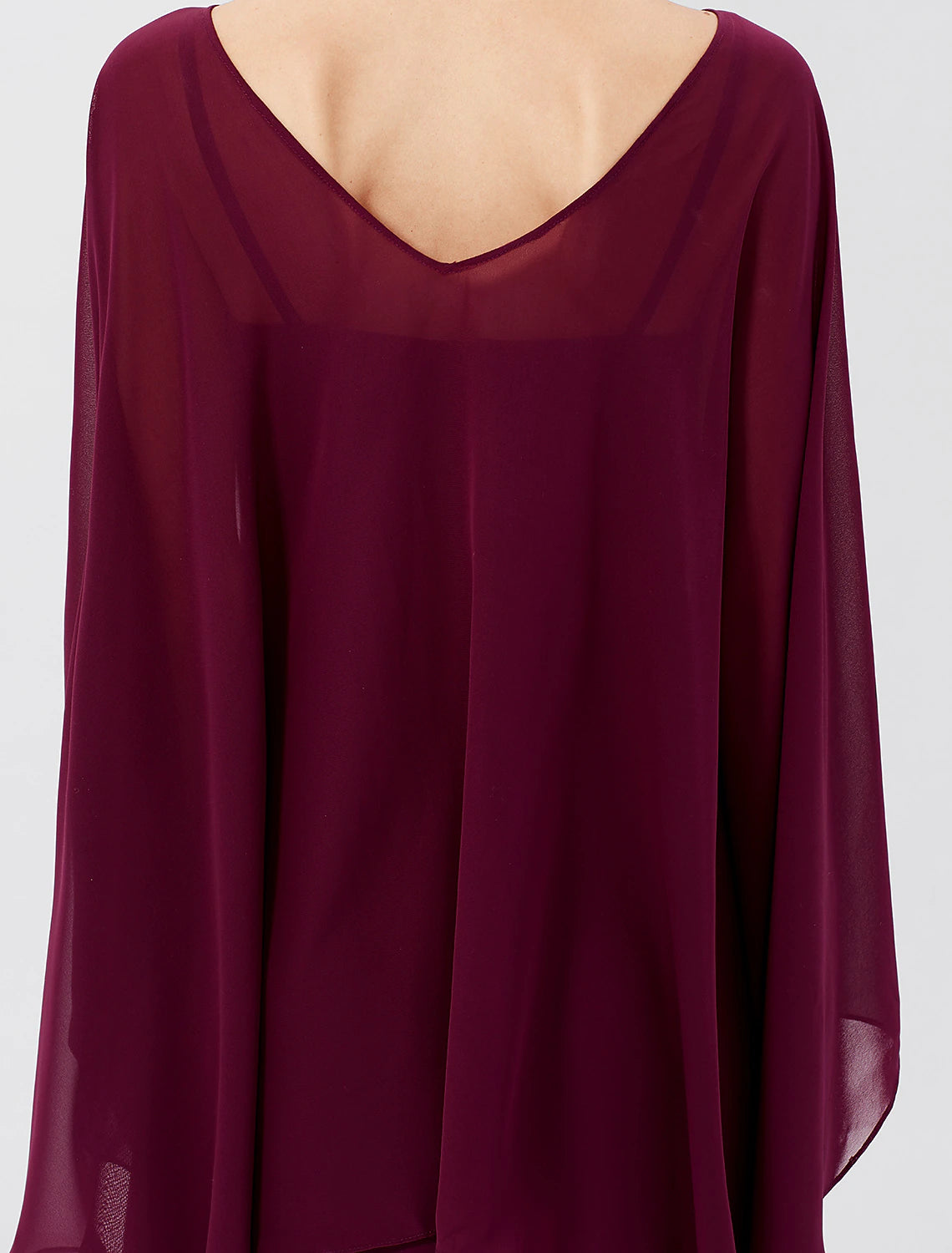 wholesale Sheath / Column Mother of the Bride Dress Formal Classic & Timeless Elegant & Luxurious Elegant V Neck Floor Length Chiffon Long Sleeve with Pleats Beading - Grape / US 2 / UK 6 / EU 32