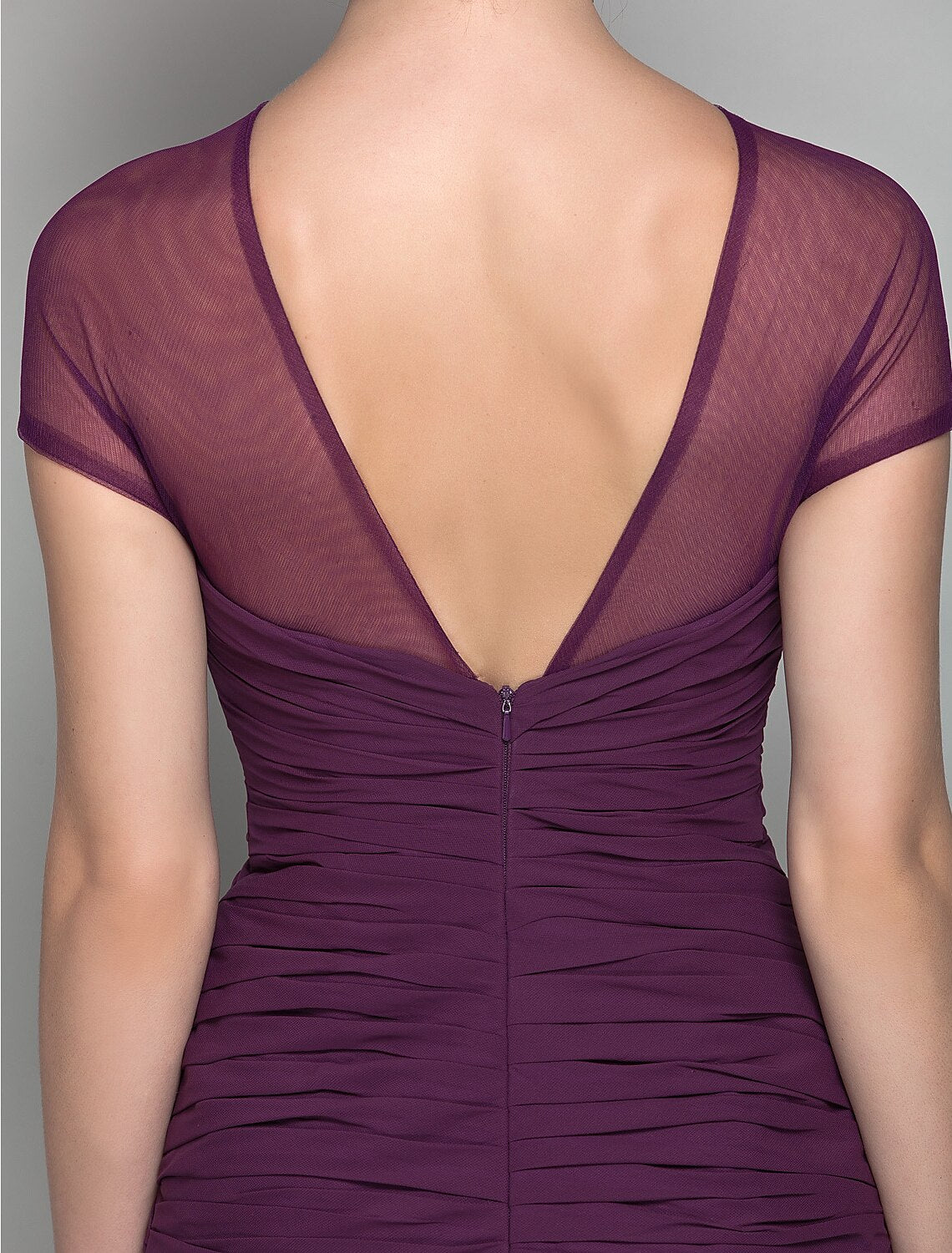 wholesale Sheath / Column Mother of the Bride Dress See Through Jewel Neck Sweep / Brush Train Chiffon Tulle Short Sleeve with Beading Side Draping - US 2 / UK 6 / EU 32