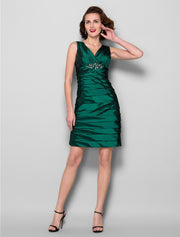 wholesale Sheath / Column Mother of the Bride Dress V Neck Knee Length Taffeta Sleeveless with Criss Cross Ruched Crystals - Dark Green / US 2 / UK 6 / EU 32