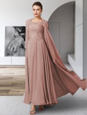 wholesale Two Piece A-Line Mother of the Bride Dress Elegant Jewel Neck Ankle Length Chiffon Lace Sleeveless Jacket Dresses with Pleats Appliques - US 2 / UK 6 / EU 32