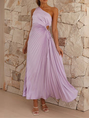 Wholesa A-Line One-Shoulder Ankle-Length Sleeveless Party Dresses