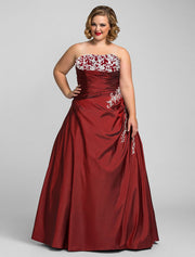 Wholesa Ball Gown Plus Size Prom Formal Evening Dress Strapless Sleeveless Floor Length Taffeta with Beading Appliques