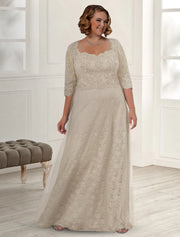 wholesale A-Line Mother of the Bride Dress Plus Size Elegant Jewel Neck Floor Length Lace Half Sleeve with Appliques - US 2 / UK 6 / EU 32