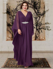 wholesale  A-Line Mother of the Bride Dress Plus Size Elegant V Neck Floor Length Chiffon Long Sleeve with Pleats Crystals