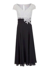 wholesale A-Line Mother of the Bride Dress Plus Size Plunging Neck Tea Length Chiffon Lace Short Sleeve with Appliques - Black / US 2 / UK 6 / EU 32