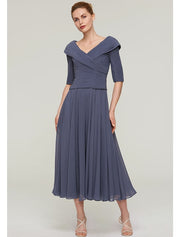 wholesale A-Line Mother of the Bride Dress Plus Size V Neck Ankle Length Chiffon Half Sleeve with Pleats - US 2 / UK 6 / EU 32