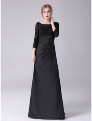 wholesale Mermaid / Trumpet Mother of the Bride Dress Plus Size Elegant Jewel Neck Floor Length Stretch Satin 3/4 Length Sleeve with Lace Ruching - US 2 / UK 6 / EU 32