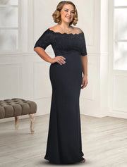 wholesale Sheath / Column Mother of the Bride Dress Plus Size Elegant Off Shoulder Floor Length Chiffon Lace Half Sleeve with Appliques - US 2 / UK 6 / EU 32