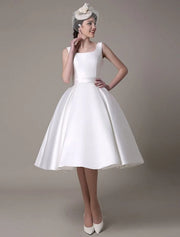 Wholesa A-Line Cocktail Dresses Party Dress Graduation Wedding Guest Knee Length Sleeveless Square Neck Satin with Pleats