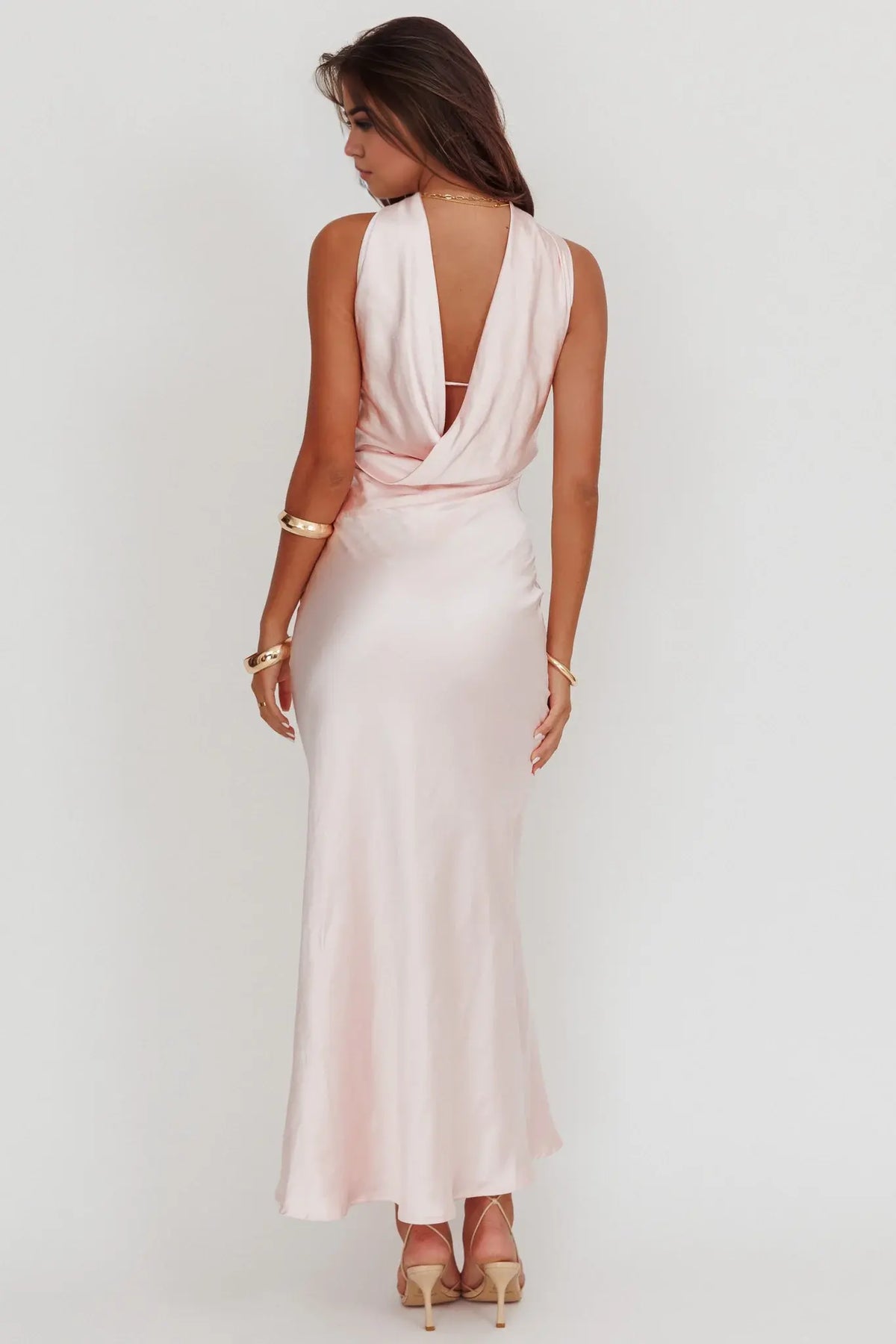 This satin neck hanging backless long dress exudes elegance and sexiness. The neck hanging design cleverly embellishes the shoulder and neck lines, paired with a backless look, releasing charming charm. The satin material has a soft luster and a strong drape, with a tailored silhouette that outlines graceful curves. The long skirt sways gently with each step, making you the center of attention for occasions such as dinners, parties, or weddings, exuding a unique fashion charm.