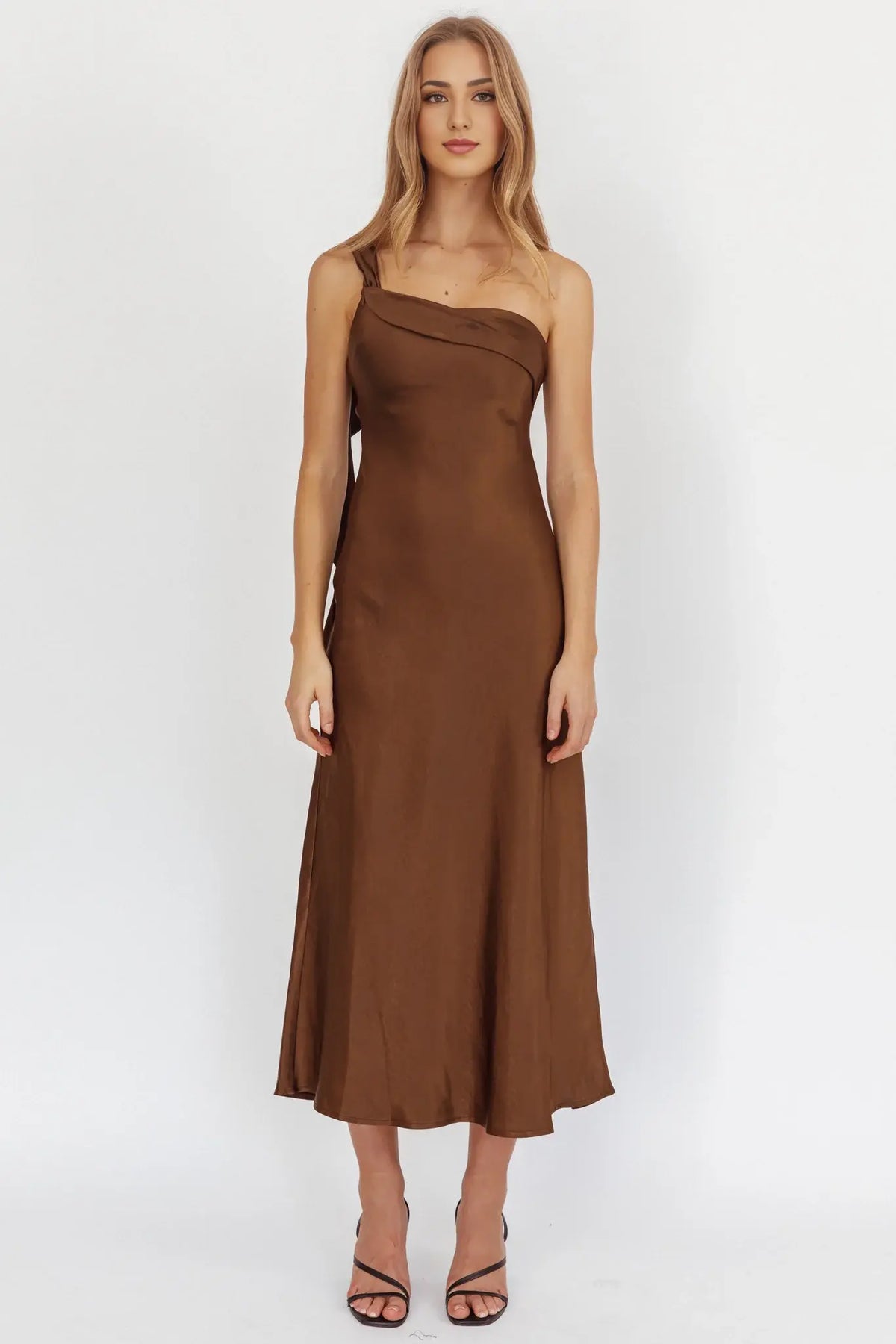 This one shoulder ribbon backless satin dress exudes elegance and sexiness. Single shoulder design paired with flowing ribbons adds a dynamic and romantic touch; The backless design showcases a charming and attractive back, which is highly eye-catching. The satin material has a soft and lustrous luster, excellent drape, and a tailored silhouette that outlines graceful curves. The long skirt sways gently with each step, making you the center of attention and exuding unique charm for occasions such as dinners, parties, and weddings.