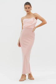 This pink strapless long dress exudes elegance and softness. The strapless design is generous, revealing charming shoulder, neck, and collarbone lines, adding sexy charm; The unique pleated design on the chest, like petals, injects a romantic atmosphere into the overall look. The slim fit fits the body, perfectly outlining graceful curves. The long skirt sways gently with the steps, with a light and elegant texture. The soft pink tone is fresh and elegant, making you the center of attention for occasions such as dinners, parties, or weddings, exuding a unique fashion charm.