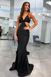 Wholesa Mermaid Spaghetti Straps Cutout Waist Sexy Red Satin Long formal dresses evening gown Prom Dress