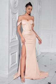 Blush Mermaid Corset Sweetheart Neckline Off the Shoulder Backless with Slit Long Charming Prom Dress For Women Formal Dress