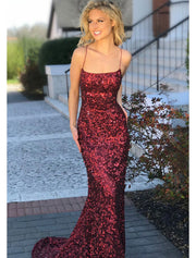 Wholesa Sheath/Column Square Neckline Sleeveless Sweep Train Sequined Dress