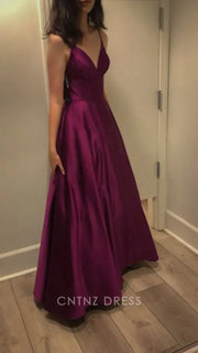 Wholesa A-line Elegant Spaghetti Straps Satin Long formal dresses Bridesmaid Dresses evening gown Prom Dress