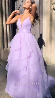 Wholesa A-line Elegant V Neck Lilac formal dresses Bridesmaid Dresses evening gown Prom Dress