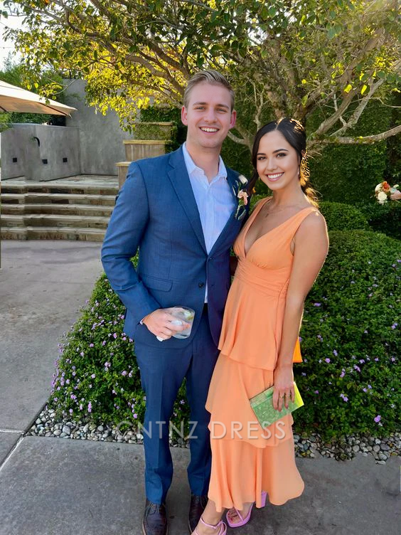 Wholesa A-line Elegant V Neck Tiered Ruffle formal dresses Bridesmaid Dresses evening gown Prom Dress