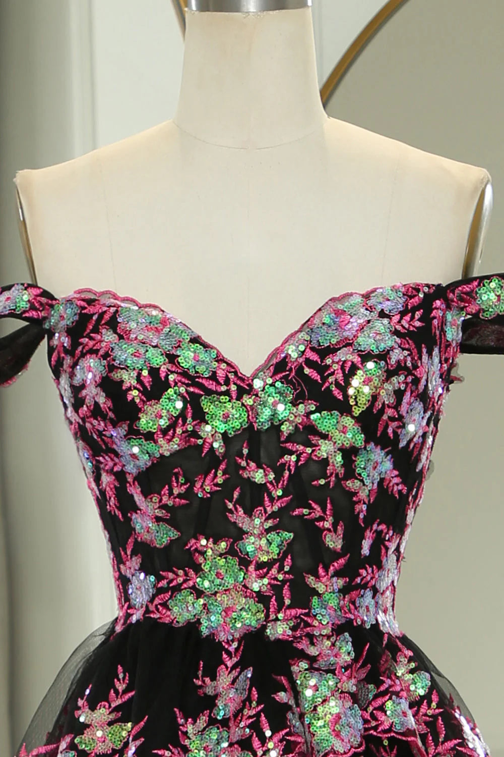 Wholesa A-Line Glitter Tiered Long Prom Dress With Lace