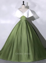 Wholesa A-line Green and White Satin Long formal dresses Bridesmaid Dresses evening gown Prom Dress