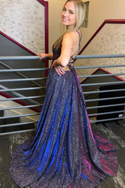 A-line Hot Selling Backless Navy Blue Long Prom Dresses Formal Dresses