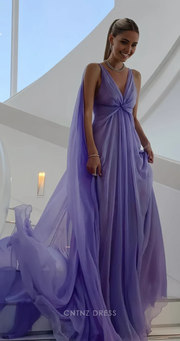 Wholesa A-line Simple V Neck Purple Tulle formal dresses Bridesmaid Dresses evening gown Prom Dress