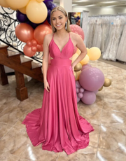 Wholesa A-Line Spaghetti Straps Criss-Cross Back Fuchsia Long formal dresses Bridesmaid Dresses evening gown Prom Dress