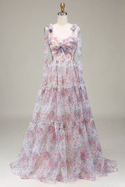 Wholesa A-Line Spaghetti Straps Lilac Flower Printed Prom Dress