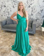Wholesa A-Line Spaghetti Straps Ruched Green Long formal dresses Bridesmaid Dresses evening gown Prom Dress - US 2 / UK 6 / EU 32