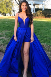 Wholesa A-line Spaghetti Straps Satin Long Prom Dresses With Slit
