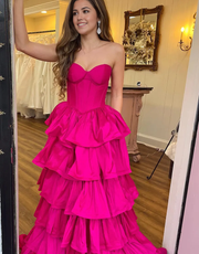 Wholesa A-Line Strapless Corset Ruffles Fuchsia formal dresses evening gown Long Prom Dress