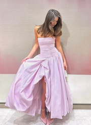 Wholesa A-line Strapless Pleated Pink formal dresses Bridesmaid Dresses evening gown Prom Dress With Split