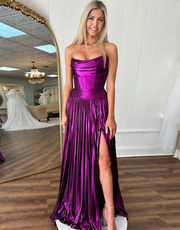 Wholesa A-Line Strapless Ruched Corset Long formal dresses evening gown Prom Dress with Slit - US 2 / UK 6 / EU 32