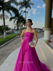 Wholesa A Line Strapless Satin Long Ruffles formal dresses Bridesmaid Dresses evening gown Prom Dress