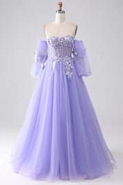 Wholesa A-Line Strapless Tulle Sleeves Long Prom Dress
