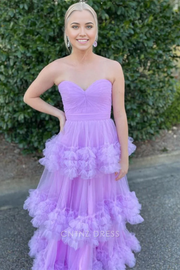 Wholesa A Line Sweetheart Tulle Floor Length Lilac Long formal dresses Bridesmaid Dresses evening gown Prom Dress with Ruffles