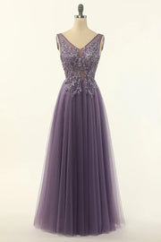 Wholesa A-line Tulle Applique Prom Dresses Gown