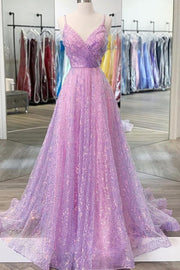 Wholesa A Line Tulle With Straps V-Neck Backless Prom Dresses