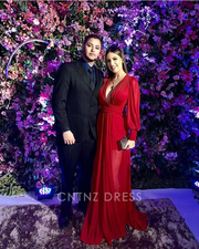 Wholesa A-line V Neck Long Sleeves Red formal dresses Bridesmaid Dresses evening gown Prom Dress