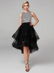Wholesa Ball Gown Cute Dress Homecoming Knee Length Sleeveless Jewel Neck Wednesday Addams Family Satin with Beading Cascading Ruffles - US 2 / UK 6 / EU 32