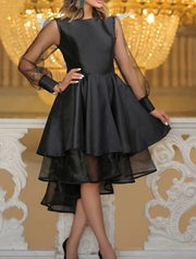 Wholesa Ball Gown Prom Dresses Party Dress Prom Black Tie Gala Tea Length Long Sleeve Off Shoulder Belt / Sash Satin Backless with Ruched