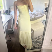 Wholesa Mermaid Cute Strapless Chiffon Ruffles Yellow formal dresses Bridesmaid Dresses evening gown Prom Dress