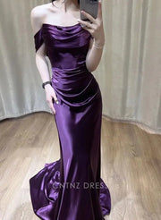 Wholesa Mermaid Off Shoulder Purple Satin Long formal dresses Bridesmaid Dresses evening gown Prom Dress