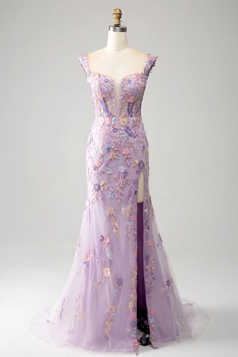 Wholesa Mermaid Off The Shoulder Long Embroidered Prom Dress Slit
