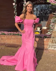 Wholesa Mermaid Off the Shoulder Pink formal dresses evening dress Long Prom Dress