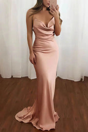 Wholesa Mermaid Spaghetti Straps Satin Long Prom Dress