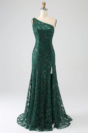 Wholesa Mermaid Sparkly Beaded Long Lace Prom Dress with Slit)