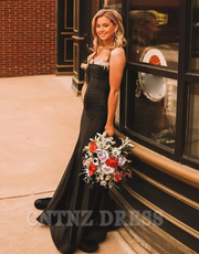 Wholesa Mermaid Sparkly Beaded Strapless Satin Black Long formal dresses Bridesmaid Dresses evening gown Prom Dress