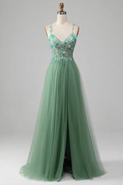 Wholesa A-Line Sparkly Spaghetti Straps Corset Prom Dress With Appliques