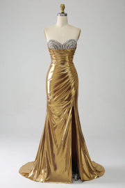 Wholesa Mermaid Strapless Long Prom Dress with Slit